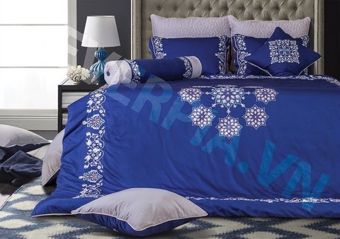 Bộ chăn ga gối đệm cao cấp Artemis As1704 Hàn Quốc chất liệu 100% cotton cao cấp, nhập khẩu Hàn Quốc. Gam màu chủ đạo của bộ sản phẩm là màu tím than cùng với những họa tiết được chần cầu kỳ ở mặt ga và mặt sau gối. Những họa tiết thêu hoa văn cổ điển trên nền màu tím than bởi những sợi chỉ thêu màu trắng càng làm sản phẩm trở nên nổi bật và cuốn hút hơn. Sản phẩm rất thích hợp cho những khách hàng yêu thích gam màu trầm sẫm, nhã nhặn và sang trọng..