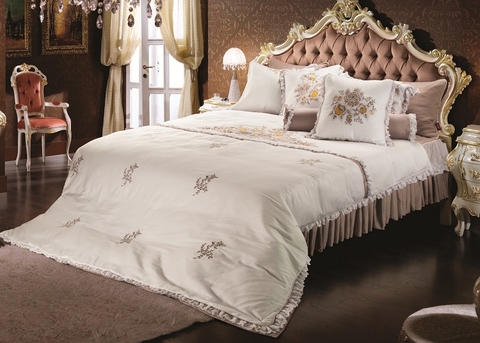 Bộ chăn ga gối Artemis AS1809 cao cấp sở hữu màu sắc trang nhã, kết hợp hoạ tiết là hình ảnh Ong và vương miện được coi là biểu tượng của phú quý và quyền lợi