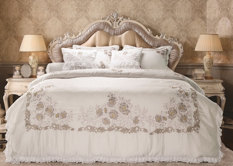 Bộ Artemis AS1806 sở hữu tone màu ghi trắng nhưng bộ chăn ga gối cao cấp Artemis As1806 sự kết hợp nhuần nhuyễn và phá cách trắng ghi pha xanh và chăn thêu hoa dây xuyên suốt tạo nên sự uyển chuyển...