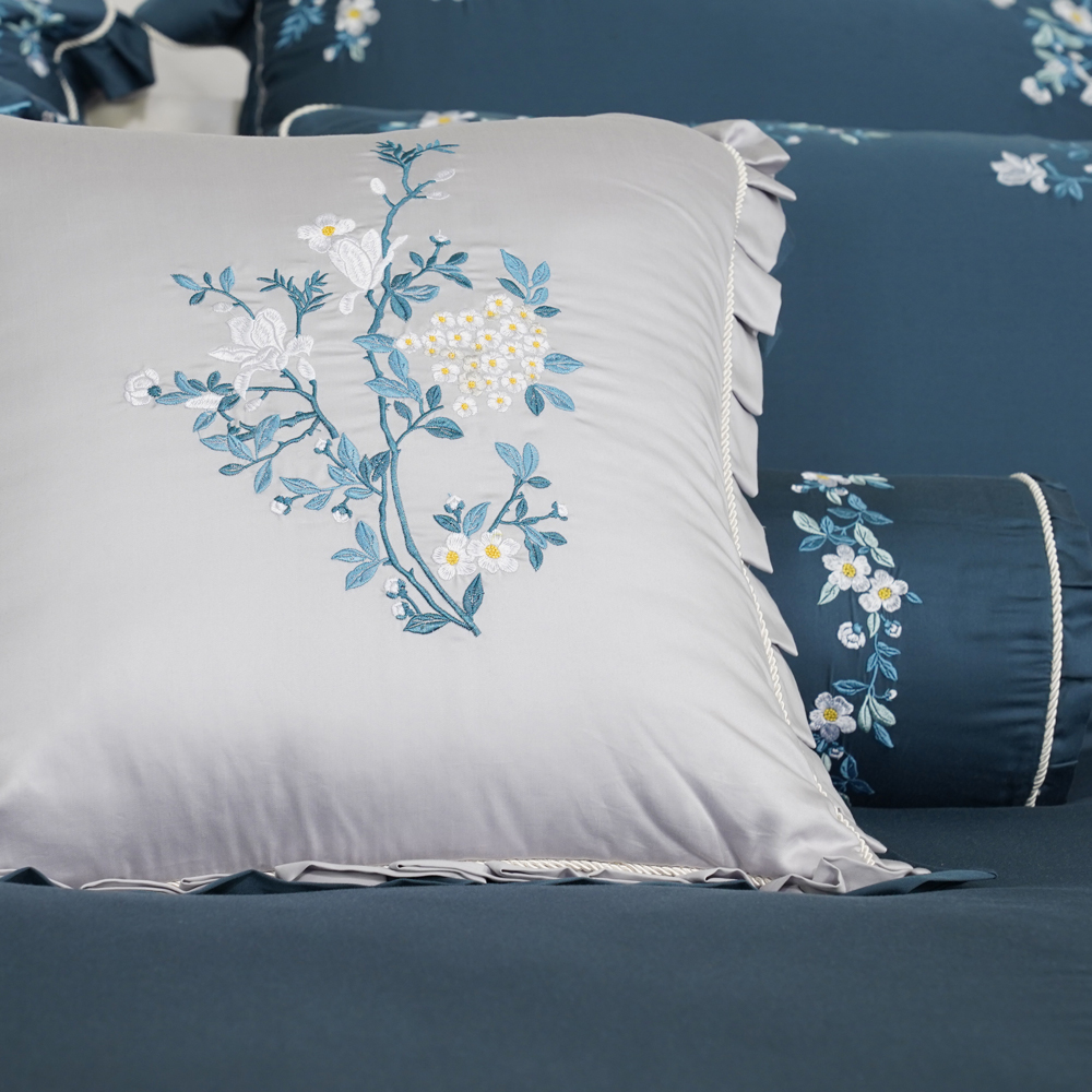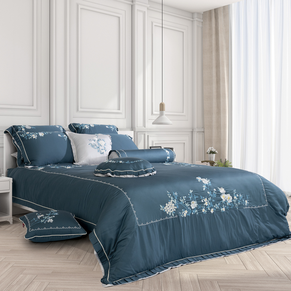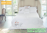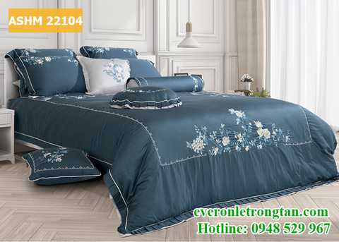 Bộ chăn ga ASHM22104 là bộ sản phẩm tuyệt vời với sự kết hợp của 3 loài hoa đẹp và ý nghĩa: hoa hồng, hoa mộc lan và hoa cẩm tú cầu. Tuy sử dụng 3 loài hoa nhưng thiết kế của bộ sản phẩm vô cùng hài hòa, hình thêu tỉ mỉ, sắc nét, vừa đủ để tôn lên vẻ đẹp của các loài hoa. Gam màu chủ đạo của bộ chăn ga là màu xanh đậm cùng chỉ thêu màu ghi và trắng rất nổi bật. Tất cả tạo nên một ASHM22104 đầy vẻ ngây thơ, trong sáng, thuần khiết nhưng vẫn không mất đi vẻ sang trọng, kiêu ngạo vốn có.