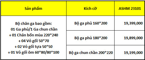 Bộ sản phẩm chăn ga gối Artemis ASHM-23101 sở hữu đa dạng sản phẩm với nhiều kích thước, kiểu dáng, hứa hẹn sẽ khiến không gian phòng ngủ của gia chủ như được khoác lên một màu sắc mới, ấn tượng và sang trọng.