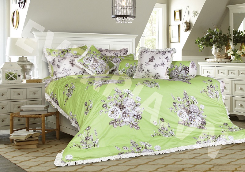 Ep 1731, Bộ Chăn ga gối Hàn Quốc Everon Ep1731 chất liệu 100% cotton . Bộ sản phẩm lấy cảm hứng từ thiên nhiên xanh tươi. Với những trùm hoa sống động trên nền vải màu xanh nhẹ nhàng . Viền của sản phẩm là đường ren màu trắng tạo cảm giác mềm mại . Màu vàng được pha với màu xanh cốm là một màu sắc tương đối mới mẻ, BỘ CHĂN GA EVERON EP1731 đã sử dụng tông màu trên làm màu nền kết hợp với những đóa hồng bạch và những hoa cỏ dại làm cho người ta liên tưởng đến một cánh đồng lúa chín ở làng quê. Ngoài độc đáo về màu sắc và họa tiết thì bộ chăn ga này còn làm cho người ta ấn tượng hơn về thiết kế, phần bèo rúm nhẹ hàng xung quanh chiếc gối và chiếc chăn càng làm cho căn phòng ngủ thêm điệu đà và sang trọng hơn.