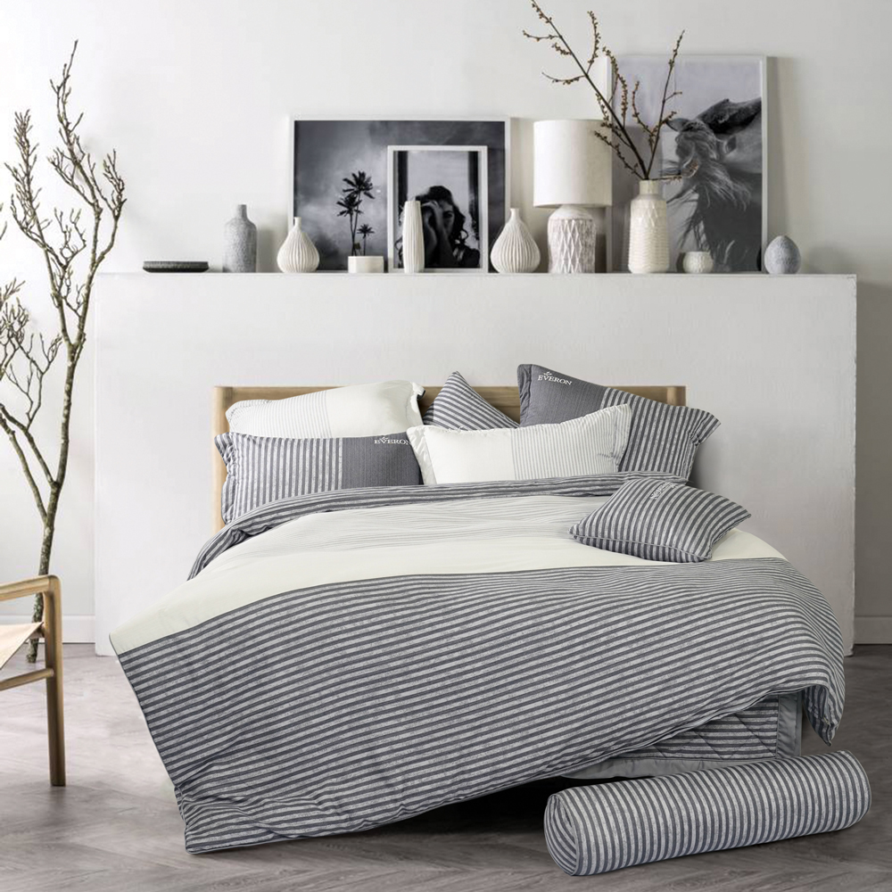 Bộ chăn ga EPM22062 sử dụng phối màu vô cùng độc đáo, với tone ghi từ nhạt đến đậm, mang đến cảm giác mới lạ, thu hút hơn. Những đường kẻ ngang được in đậm nhạt trên nền vải, phối cùng đường kẻ dọc của gối tạo nên một thiết kế hoàn chỉnh, rất trẻ trung, cá tính và mạnh mẽ, dễ dàng kết hợp với mọi phong cách phòng ngủ.