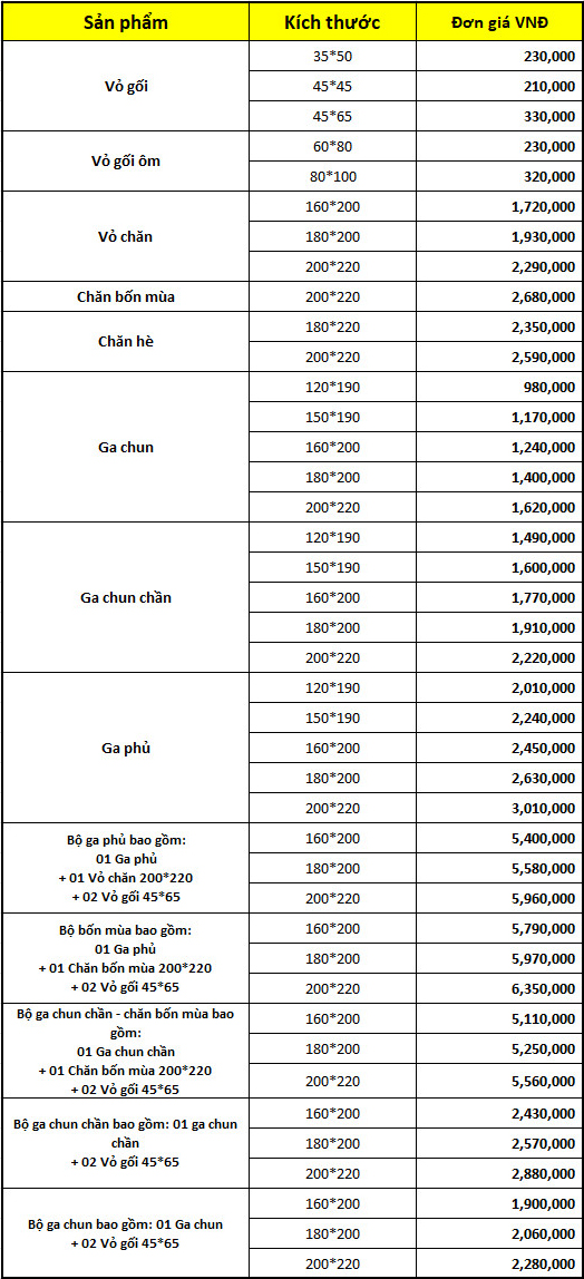Bộ chăn ga gối Everon ESC 22003Bộ sản phẩm bao gồm: Thiết kế: ESC22003 là bộ chăn ga dành cho những cô nàng năng động, trẻ trung và luôn yêu đời, yêu cuộc sống. Gam màu chủ đạo của bộ chăn ga là màu vàng tươi của nắng, điểm thêm một vài bông hoa cúc nhỏ xinh rất nổi bật và tươi trẻ. Chất liệu vải Cotton mềm mại, láng bóng sẽ cho bạn một giấc ngủ ngon trọn vẹn. Thêm vào đó, slogan “Girl boss” và “Smile Day” sẽ là động lực, sự cổ vũ cho ngày mới của bạn luôn tràn đầy năng lượng tích cực, vui tươi. Chất liệu: Bộ chăn ga sử dụng chất liệu vải Cotton Satin với nhiều ưu điểm vượt trội chinh phục khách hàng: - Chất liệu vải tự nhiên, không lẫn tạp chất, thân thiện với môi trường - Vải mềm mại, láng bóng, nâng niu làn da của người dùng, kể cả trẻ em hay người có làn da nhạy cảm - Vải có khả năng thấm hút cực tốt, thông thoáng, thích hợp cho cả mùa lạnh hay mùa nóng - Sản phẩm có độ bền cao, giữ màu tốt, mang lại những cảm nhận trọn vẹn cho người dùng HƯỚNG DẪN GIẶTLiên hệ