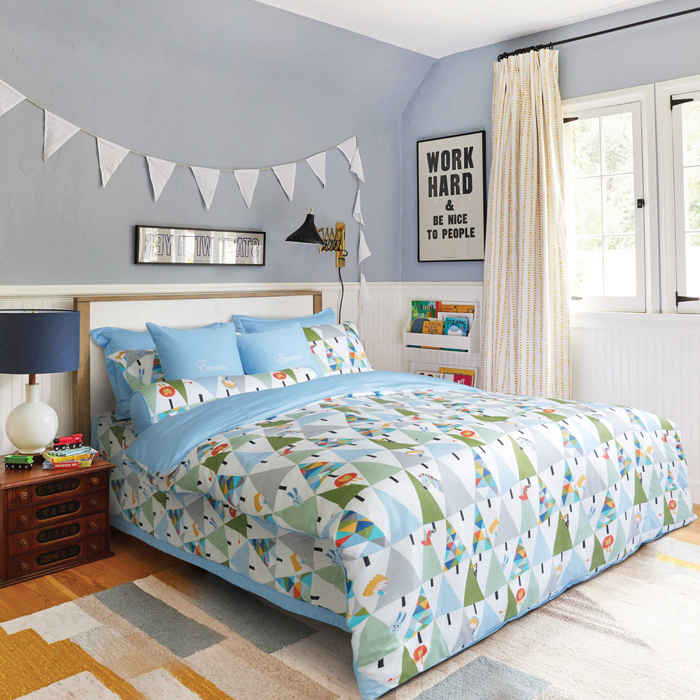 Nếu EPM22070 mang đến sự ngọt ngào, dịu dàng của bé gái thì EPM22071 lại là một bức tranh vui nhộn, tinh nghịch hơn cho các bé trai. Vẫn là họa tiết cây cối và động vật dễ thương nhưng bộ chăn ga sử dụng gam màu xanh lá hiếu động, tươi mát, kích thích phát triển sự sáng tạo, trí não của bé. Bộ chăn ga càng hoàn thiện hơn nữa khi sử dụng chất liệu vải Modal mềm mại, 100% thiên nhiên an toàn với trẻ em. Nếu nhà bạn có một bé trai năng động, hoạt bát, đừng bỏ qua bộ chăn ga EPM22071 nhé!