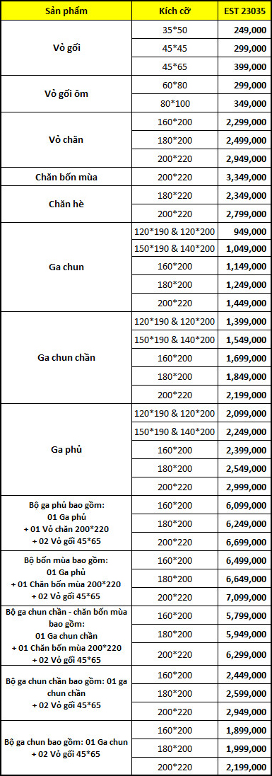 Thông số chi tiết Bộ chăn ga gối Everon EST 23035
