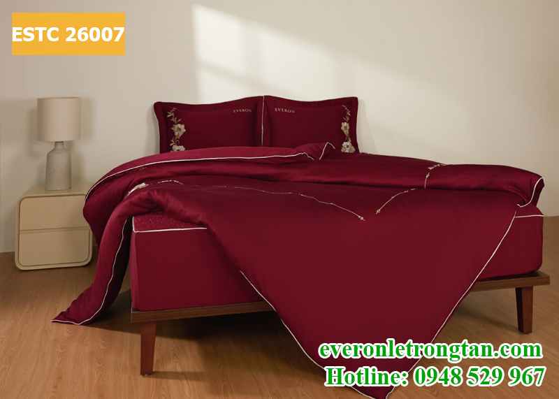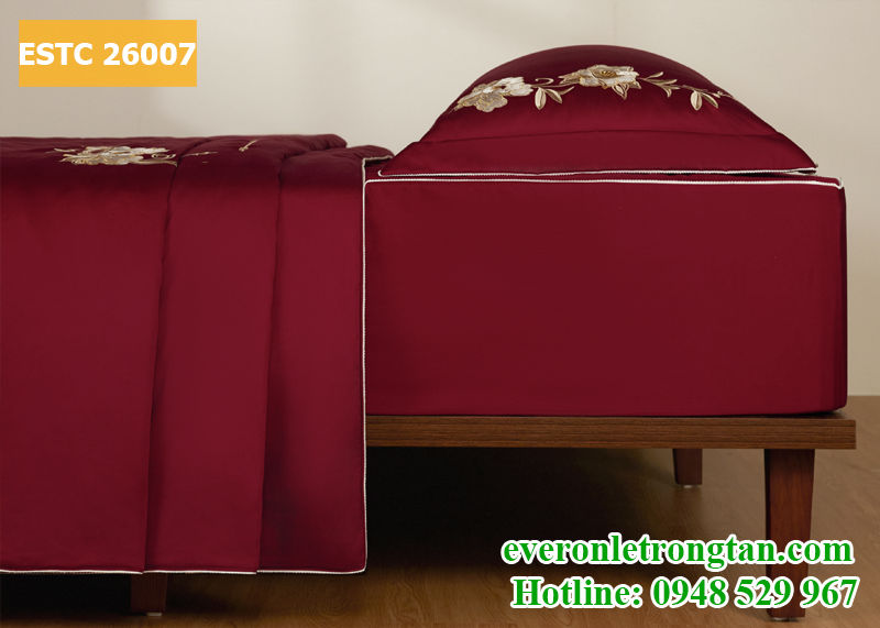 Hoa cẩm chướng tượng trưng cho tình yêu, sự bao dung và lòng chung thuỷ. Những đoá hoa được thêu tinh tế lên nền vải đỏ rực rỡ tạo nên sự duyên dáng và ý nhị cho tác phẩm chăn ga. Một lựa chọn tuyệt vời để ghi dấu những kỷ niệm đôi lứa.