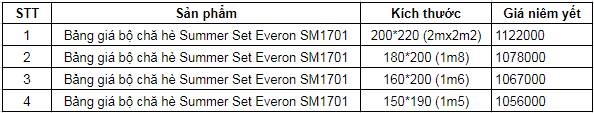 Bảng giá bộ chă hè Summer Set Everon SM1701