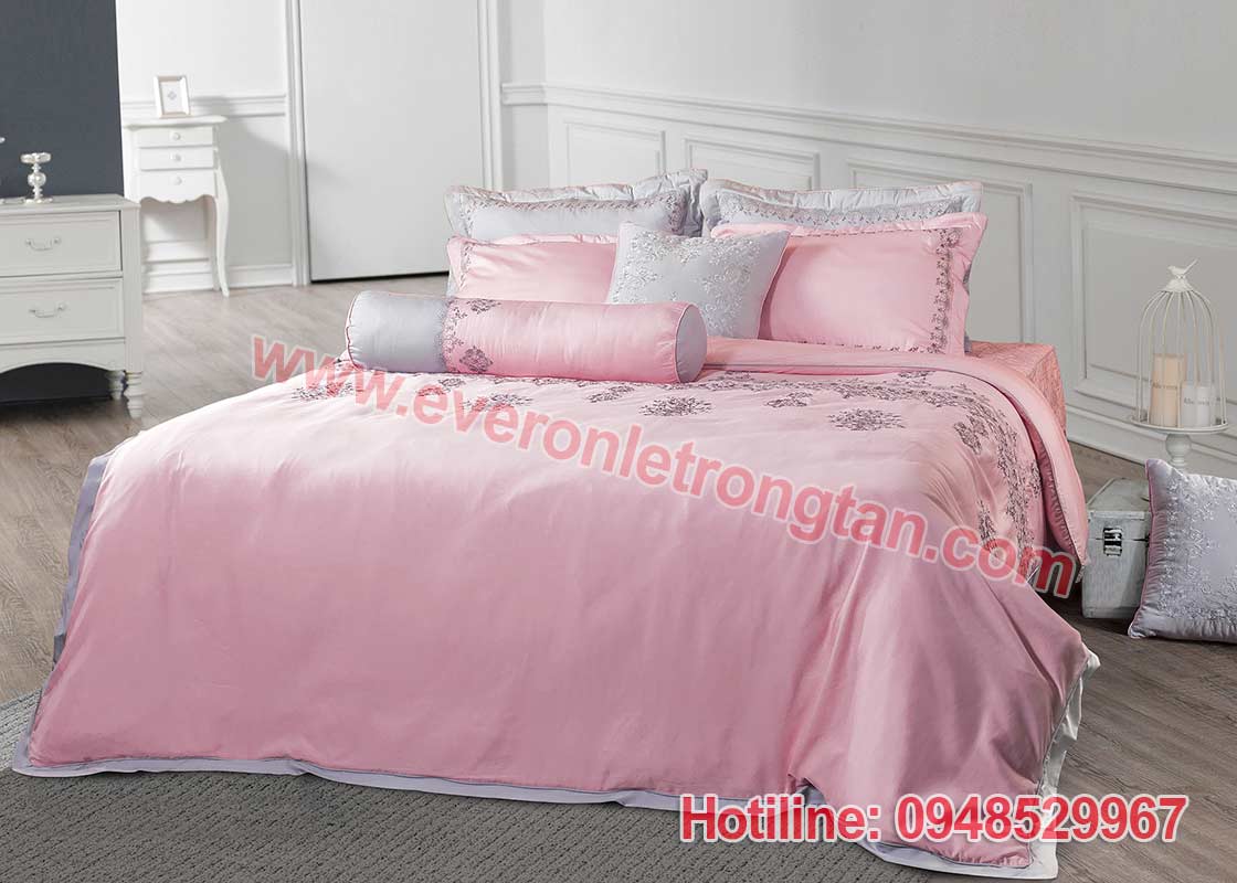 Mô tả: Nếu bạn muốn có một đám cưới theo phong cách Vintage thì đây là lựa chọn hàng đầu cho chiếc giường cưới của bạn. Trên nền vải Modal óng mượt là họa tiết ren được thêu tỉ mỉ, tinh tế. Sự kết hợp của màu hồng và ghi đem đến sự lãng mạn, trẻ trung nhưng cũng không kém phần sang trọng, cổ điển.