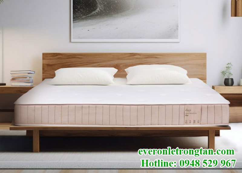 Độ dày phổ biến là khoảng 14-19 cm, tùy kích thước (ví dụ: 160×200 cm, 160×200 cm, 200×220 cm), với độ đàn hồi cao để hỗ trợ cột sống và giảm áp lực lên cơ thể.