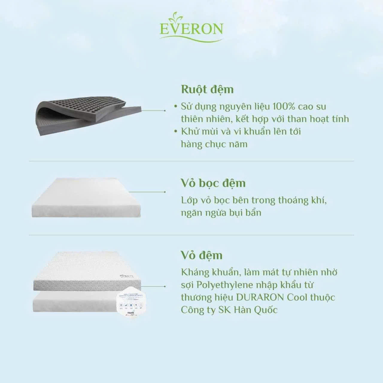Đệm than hoạt tính là một sản phẩm mang thương hiệu Everon. Như đã biết than hoạt tính có nhiều tác dụng tích cực đến sức khỏe con người giúp khử độc, khử trùng, kháng khuẩn, lọc khíLiên hệ -